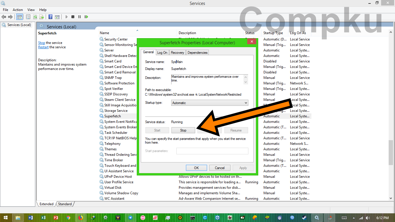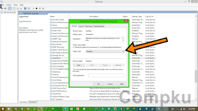 singkatnya, service superfecth berfungsi untuk mengelola RAM supaya dapat berjalan dengan efisien. salah satu kegunaannya adalah superfecth mencoba memastikan data yang sering di-akses akan dapat di-load dengan cepat. agar resource bertambah, mari kita disable service ini sementara. caranya sama dengan cara 1 dan 2 diatas, yaitu: