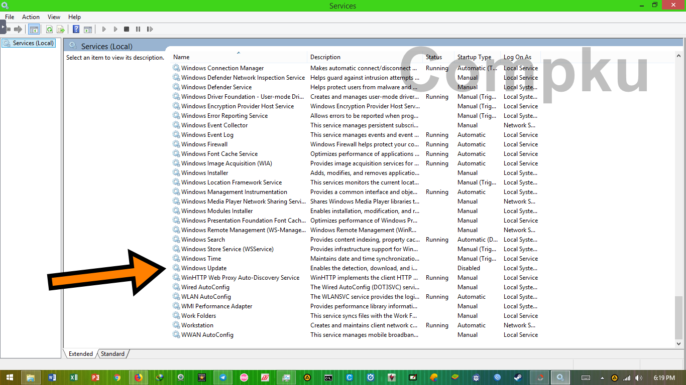 akan mucul program services-nya, terdapat service-service yang ada pada windows. scroll down, cari pada bagian name service dengan nama Windows Update, buka atau klik 2x Windows Update-nya