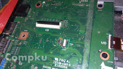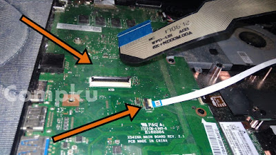 lepas kabel flexi keyboard dan touchpad dari socketnya dgn cara membuka socket ke arah atas