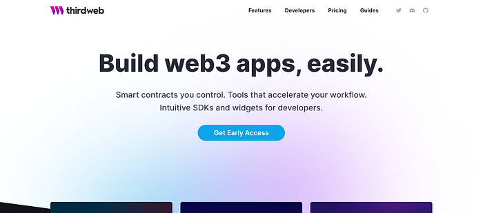 Build Web3 Apps easily with Thirdweb. Smart contracts you control. Tools that accelerate your workflow.Intuitive SDKs and widgets for developers. Third web provides Tools that accelerate your workflow. They provide built-in Intuitive SDKs and widgets for developers. Here you can create smart contracts without writing any code. thirdweb is a good platform for non-tech people. thirdweb allows us to build a dApps like NFT marketplace NFT collection etc very quickly.